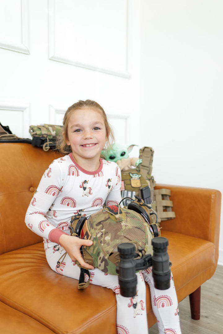 Introducing the Unicorn over Fallujah 2-Piece Set—the pajamas that make bedtime something to look forward to. Crafted with care and designed especially for little ones who love to stand out, this pajama set is perfect for kids with a bit of grit and a whole lot of sparkle. Here’s how it makes all the difference: